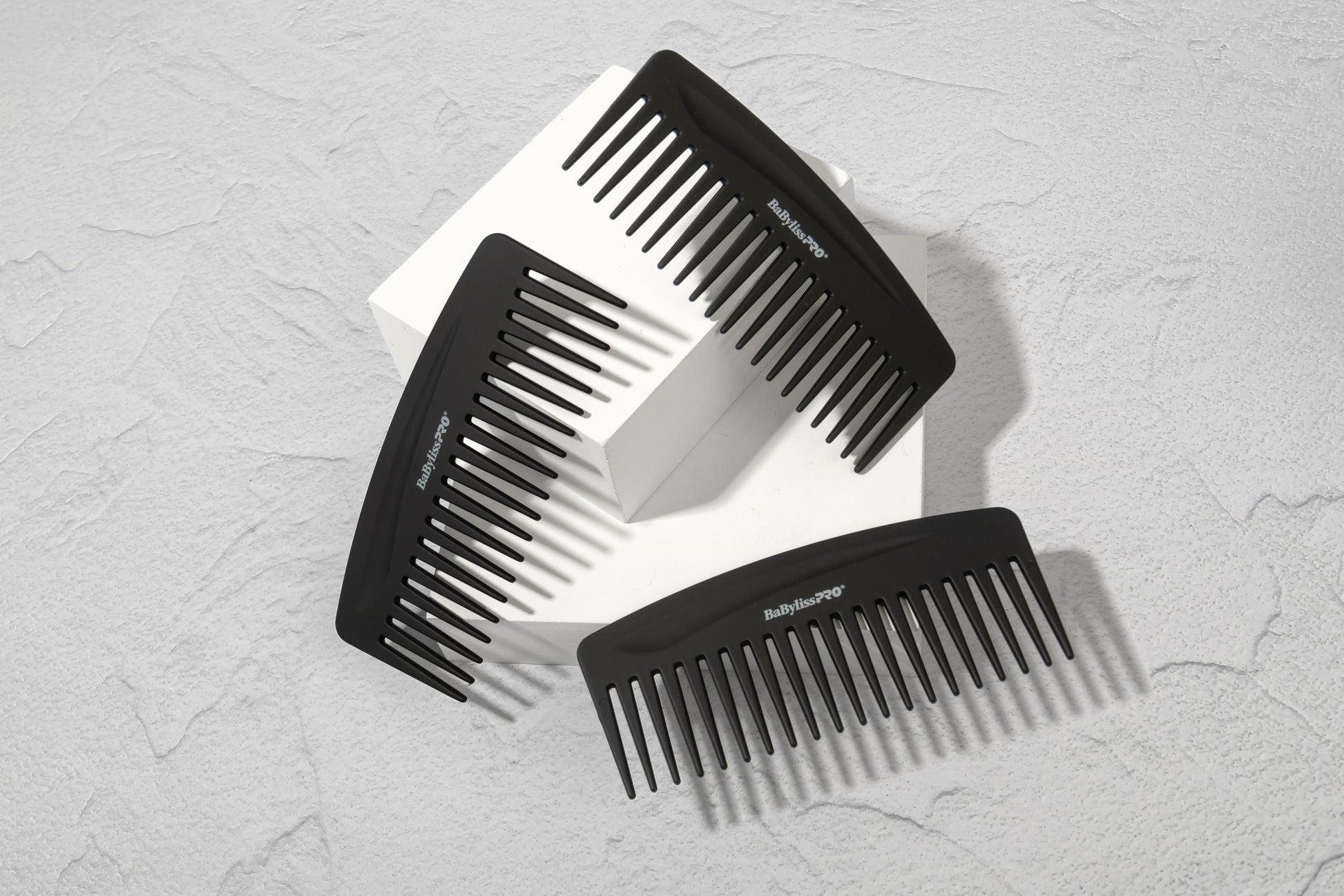 BaBylissPRO Detangling Rake Comb 12pc is designed to eliminate knots and tangles quickly and effectively, saving precious time during styling appointments. Wide teeth are great for taming all hair types, especially long, thick and curly hair types which are prone to tangling. Gentle enough for use on damage-prone wet hair making it the ideal basin or shower comb . Timeless black is perfect for any kit, basin area or workstation. 12 combs displayed in clear tub for convenience.