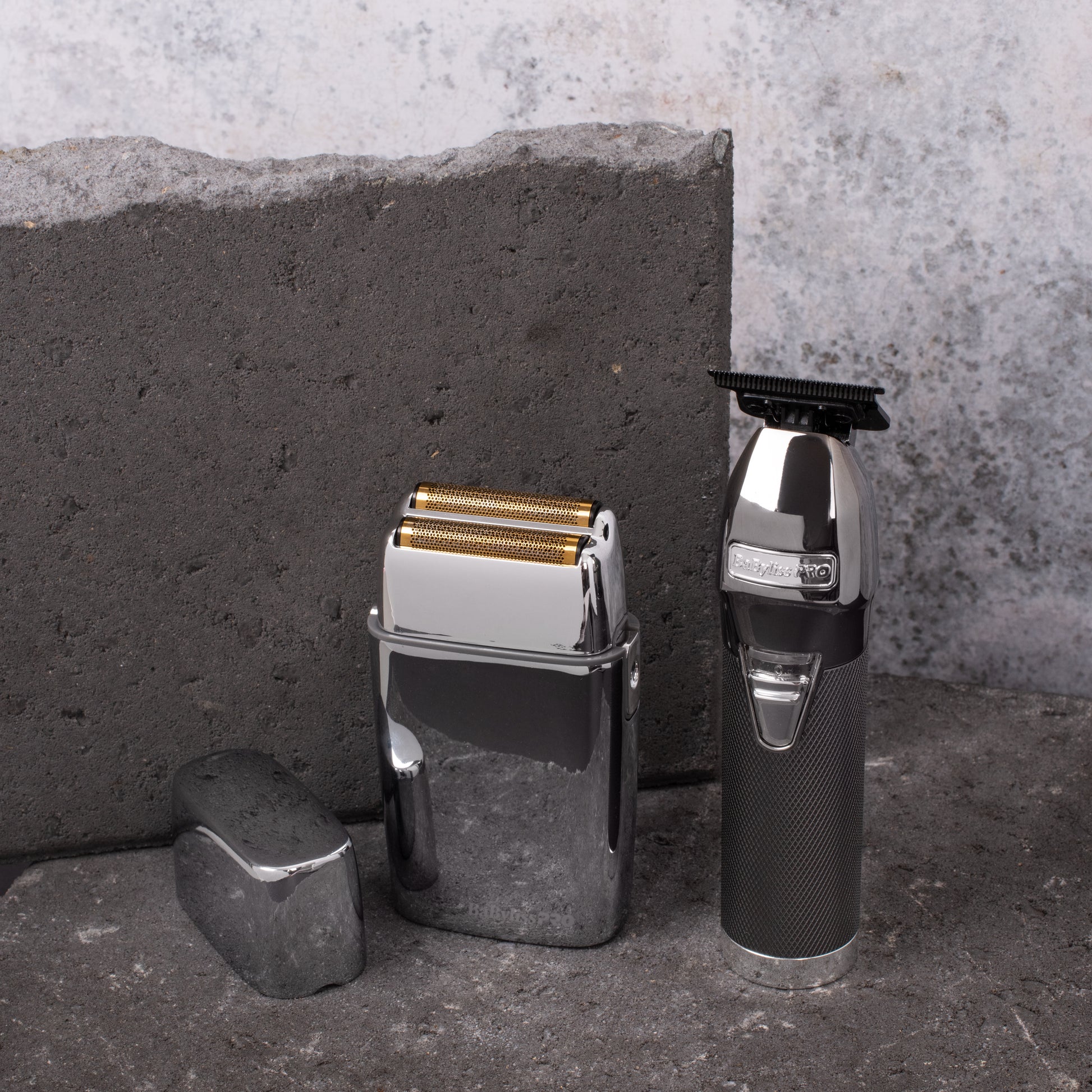 Experience the combined power of Barberology with BaBylissPRO SilverFX Outliner Trimmer and Shaver Duo. Double the power, double the performance. With Ferrari-designed motor, BaBylissPRO SilverFX Lithium Outliner Hair Trimmer is high torque and high performance. The graphite, deep-tooth, zero-gap T-blade delivers extraordinary precision. BaBylissPRO FX Double Foil Hair Shaver features ultra-fine, hypoallergenic titanium foils and an amazing 180 minutes of cordless runtime.
