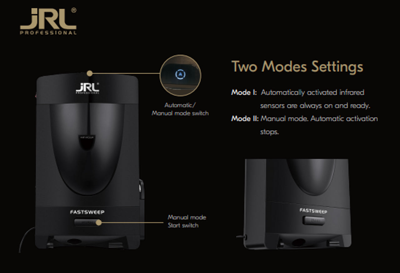 FASTSWEEP stationary vacuum cleaner is perfect for hair salons, barber shops, boutiques, hospitality, kitchens, and small businesses. Just sweep up to the infrared sensors at the base and watch as hair, dust and debris are automatically sucked into the bin