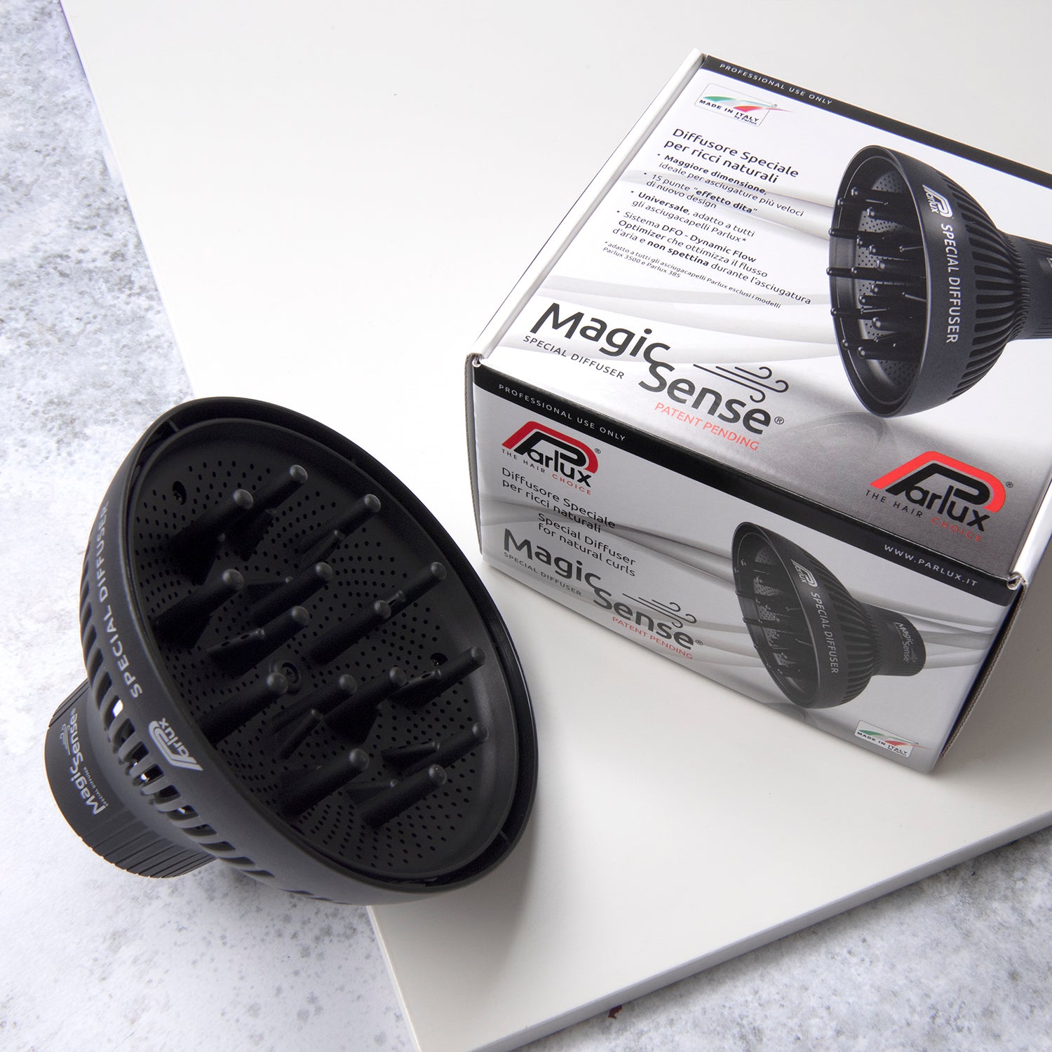 The magic airflow/temperature ratio for perfect curls. Parlux Hair Dryer MagicSense Diffuser is the unique diffuser which revolutionises how you blow-dry curls and style hair. 15 fingertips effect meets Dynamic Flow Optimiser system for superior airflow without messing up hair. Larger size enables faster drying, and anti-heating system allows for easy handling.