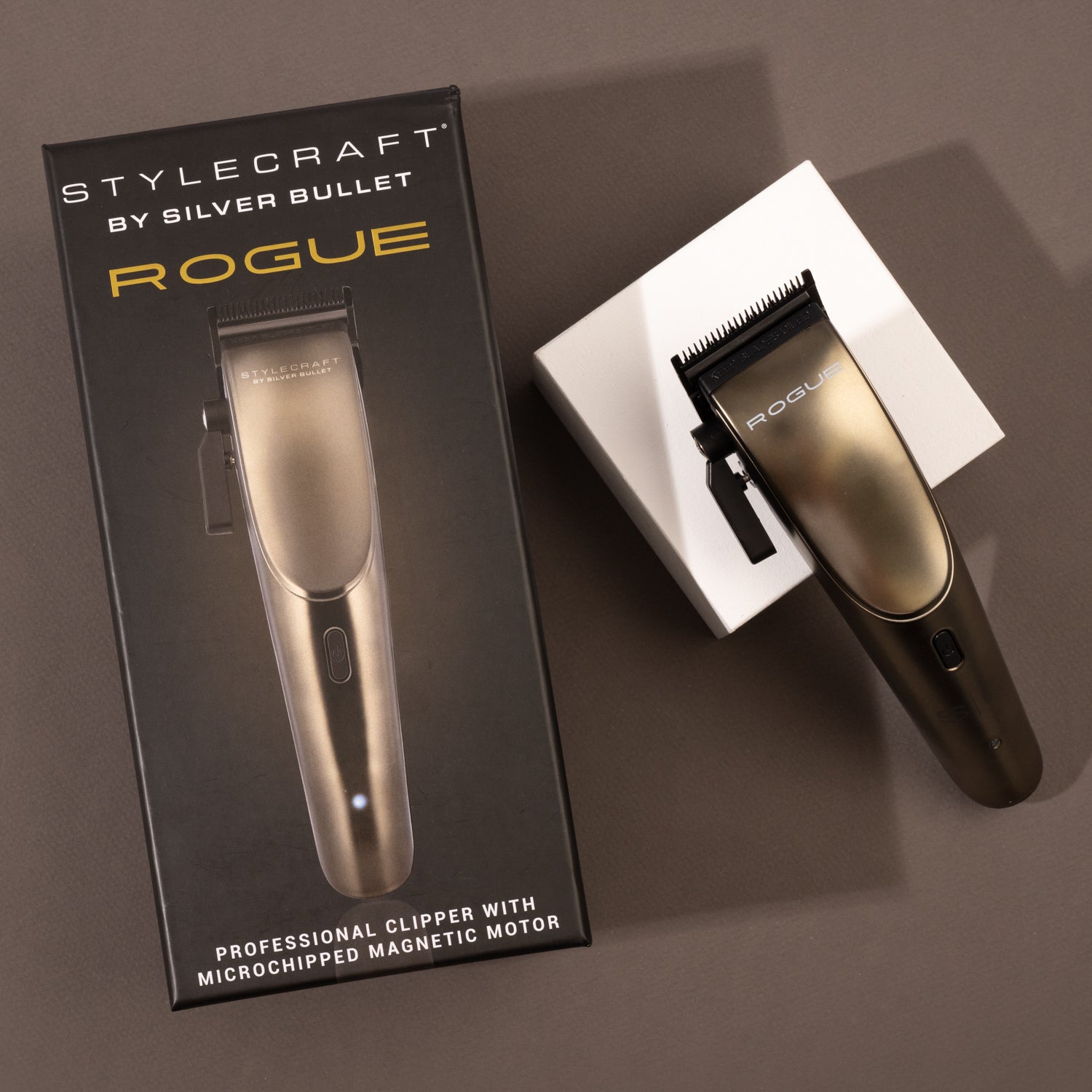 StyleCraft by Silver Bullet Rogue Hair Clipper is a high power, high quality and high performance cordless clipper. The power of a turbocharged, long-life microchipped magnetic motor which runs at 10,000 strokes per minute and has over 5,000 hours of motor life. The quality of a Black Diamond Carbon DLC blade which stays cooler, rust-free and sharper. Fully adjustable fade blade can be easily zero gapped for the closest cut and finish. The performance of a lithium ion battery with 120 minutes of cordless runtime (mains power supply via cord).